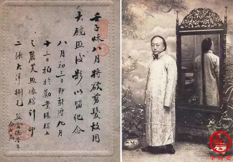 1912年9月13日,一个名为益庵的年轻人在剪辫前特意花8角大洋到照相馆拍了照,作为留念。即便他乐意剪辫,显然这对他来说也是一件大事。拍照时他站在镜子前,这样既能拍到面部,也能拍到发辫,郑重其事,可谓费了一番心思。