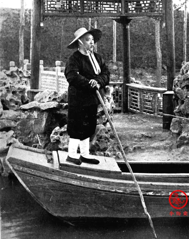 老袁身穿短衣、头戴草帽,站在小船上,如同一个渔夫。但他不是在江边海边,而是在自家堆了假山、建了凉亭的豪华庭院里。1909年,摄政王载沣解除了袁世凯的官职,袁回到彰德洹上村,过起了赋闲垂钓的生活。他写了一首诗,其中说道:“散发天涯从此去,烟蓑雨笠一渔舟。”意思是说我要远离政坛,隐居天涯。实际上,他一刻也没有停止对朝廷政局的关注,随时准备东山再起。