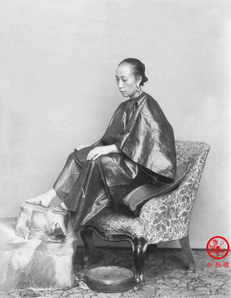 这张照片弥足珍贵,为迎合西方人士对中国生活习俗的猎奇心理而拍摄。晚清时期,让裹小脚的妇女在陌生人面前脱下鞋子并拍摄,并不容易,她们忌讳裸露面部和手肘以外的皮肤。这种情况下,摄影师需要努力去沟通与协调,可能还需要金钱的辅助。
