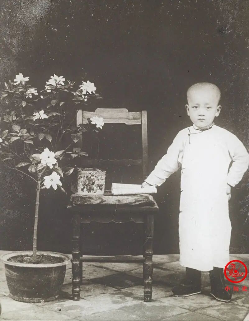 孩子一手叉腰、一手拿书籍,十分可爱。不难判断,他家里的经济条件很优越。