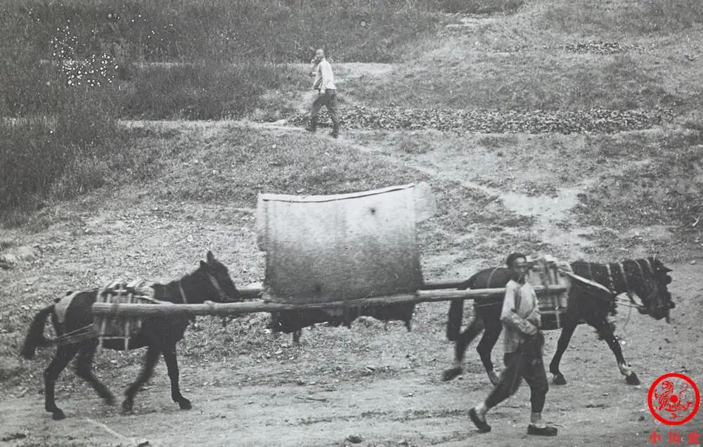 这种装置很像驮轿,虽然简陋但结构巧妙,成本低廉,适合行动不便的小脚妇女和老人乘坐。由此可见,尽管手头资源不充足,只要动脑筋,总有解决问题的办法。