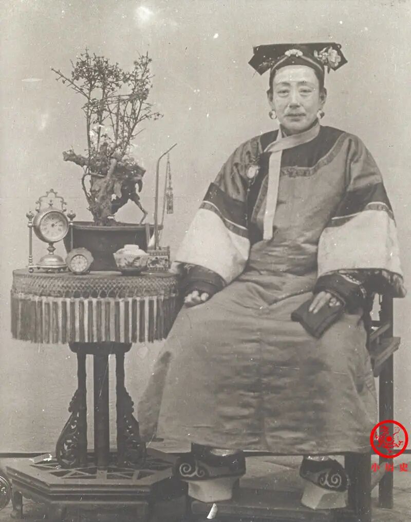 此人衣着讲究,显然出身于八旗贵族阶层。她脚上穿的花盆底鞋,正是贵妇的标志之一,行走不疾不徐,凸显婀娜身段。不过这位贵妇略显男相,形象霸气,可能不太“婀娜”。