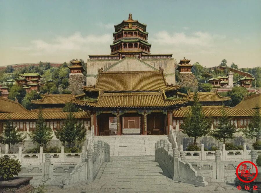晚清时期,Photoglob Company发行了一组颐和园彩色照片,展现了这座皇家园林湖光山色的美景。这些照片是运用彩色石版印刷术进行人工上色获得的。