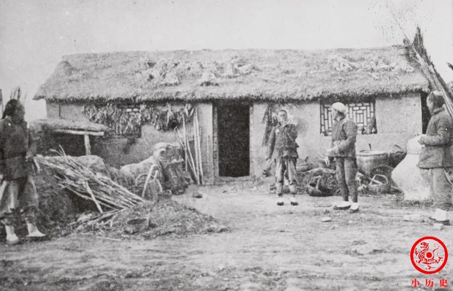 三间茅草房,勉强遮风挡雨,风大了,可能屋顶都能飞走。屋檐下挂着蔬菜,晒干后腌制,这是农民餐桌上的主要菜肴。画面左侧用矮墙围起来的地方是猪栏。厨房没有入镜,应该在院落东侧。