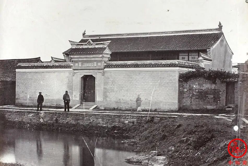 沙氏宗祠位于镇海县城内,梓荫山脚下。门前的那个洋人疑为宁郡卫安勇的统带、英国人库克上校。