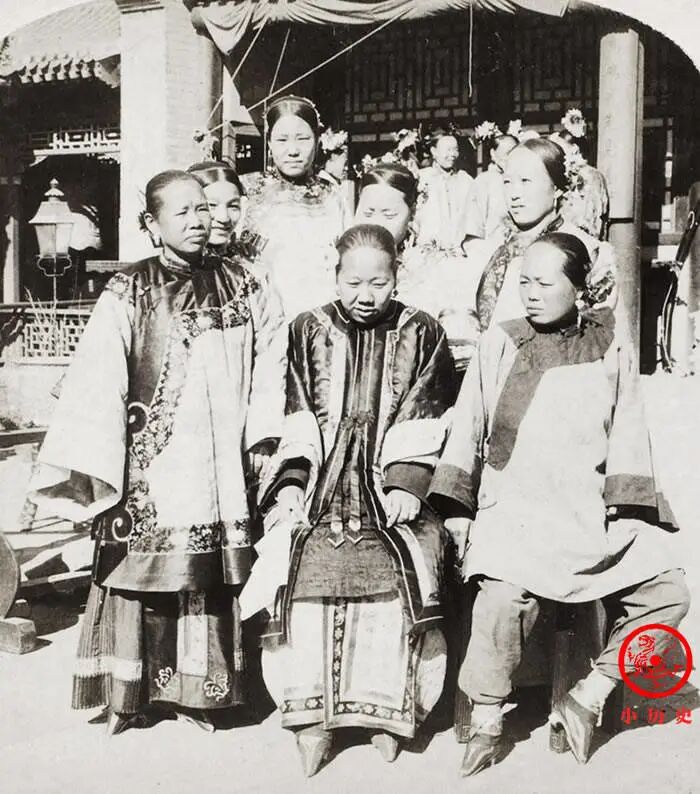 从穿着和拍照环境判断,她们的家庭非富即贵。按说八国联军侵入之前,富贵之人早就溜之大吉了,她们为何没有逃走呢?是有割舍不下的家业?还是家里男人跑了,把她们留下了?小脚限制了她们的行动。