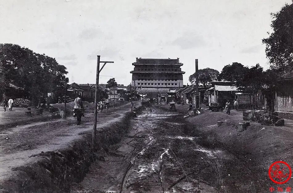 这张照片由外城向内城方向拍摄。街上行人寥寥,呈现冷清萧条的景象。