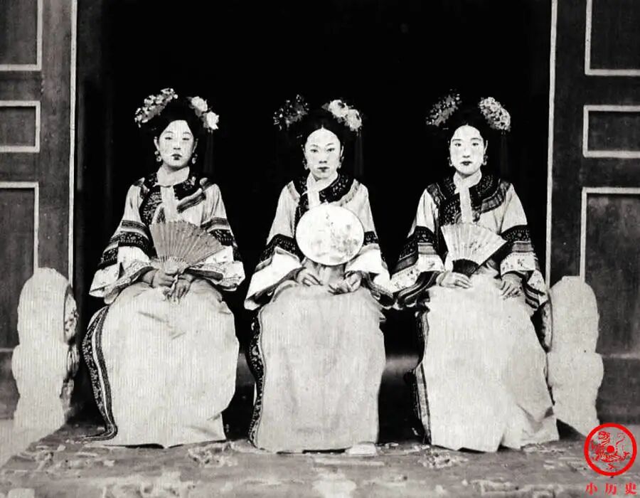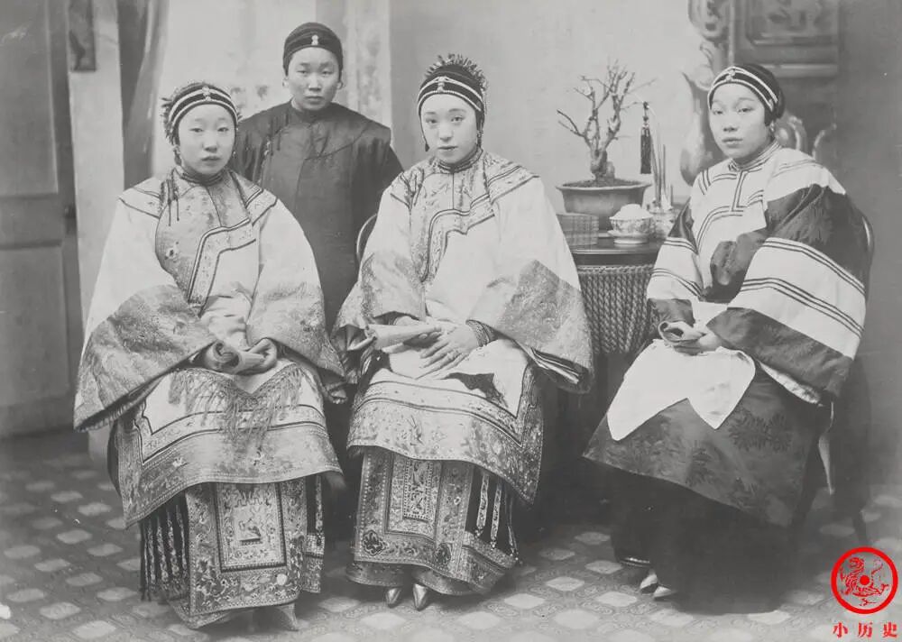 奕譞有四位福晋,嫡福晋是慈禧太后的妹妹婉贞,另外就是照片中的三位侧福晋,左一为颜扎氏 ,左二为刘佳氏,左三为李佳氏。侧福晋就是我们通常所说的小老婆。她们虽谈不上漂亮,但也个个端庄大气。