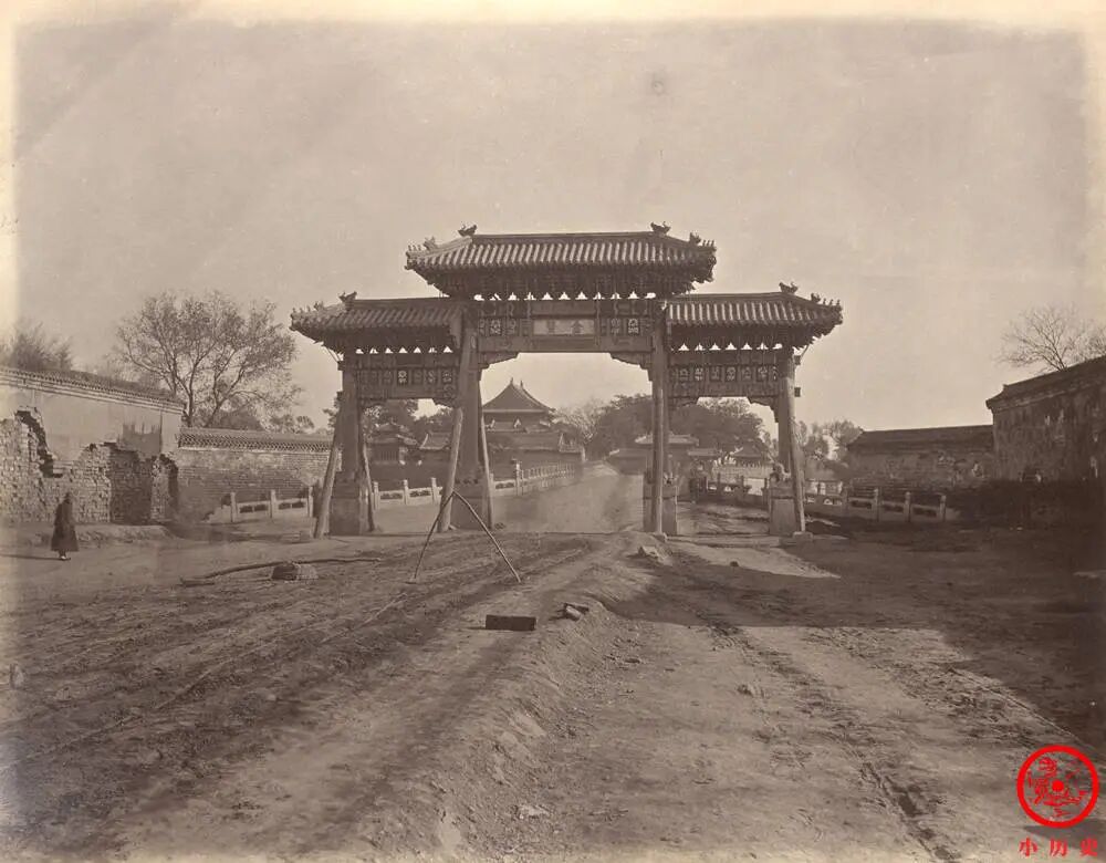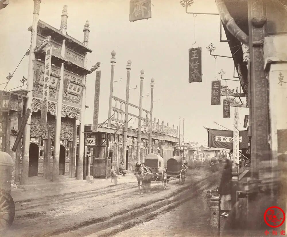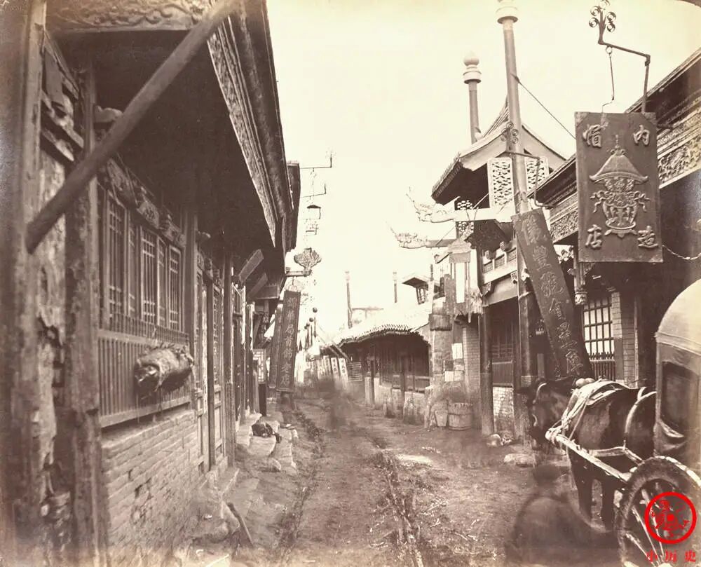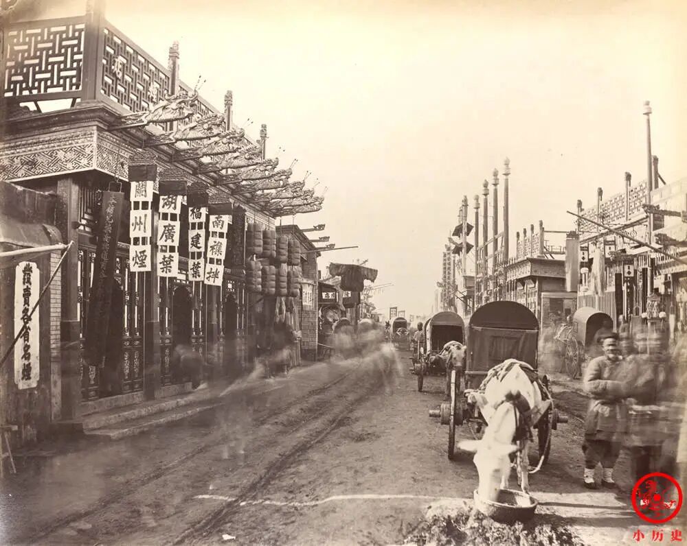 街道很窄,没什么人,显得很萧条。在此多说一句,晚清时期,北京已是百万人口的大都市。