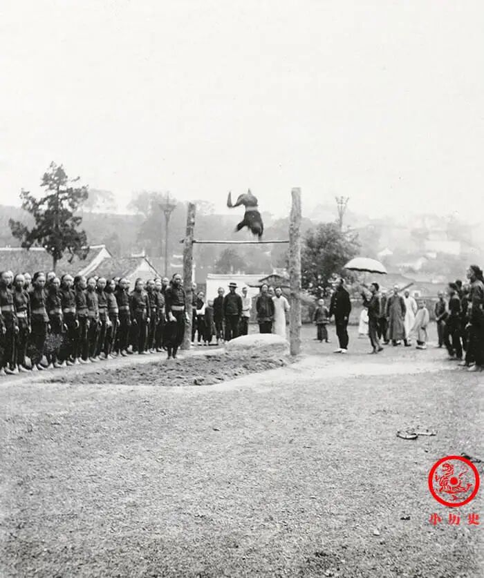 清廷在编练新军的过程中,完全使用西式的军制、训练以及装备。军事体操是以前八旗军和绿营兵不曾使用过的训练方式。大家请注意那位军官(或教官),还有人专门为他打遮阳伞。在训练场上如此娇气,很难说战斗力有多强。