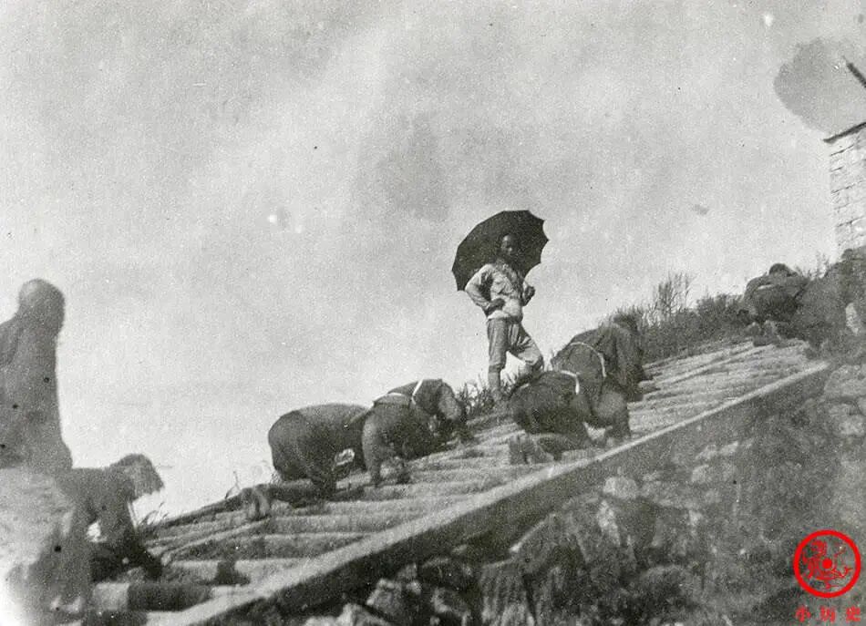 虔诚的信徒一步一跪,爬上山峰朝拜神佛。衡阳是南岳衡山的所在地,著名的道教、佛教圣地。英文原注称这座山为Han Yoh Shan,有谁知道中文名?