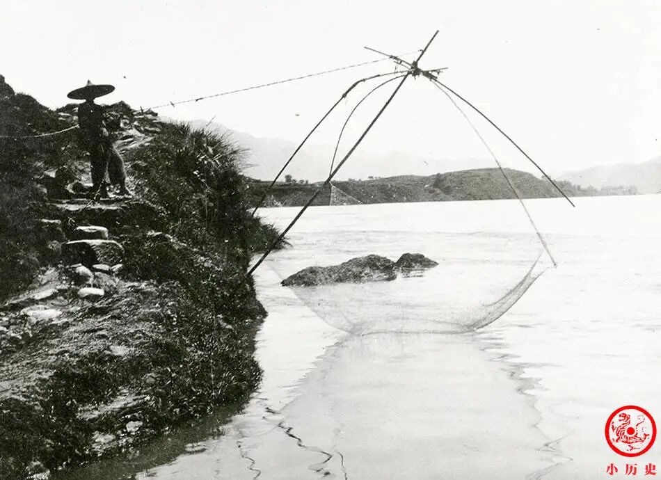 有谁在农村玩过这种捕鱼方式?它有个专门的名称,叫“扳缯”,不同的地方可能有不同的叫法。一张网敷设水中,待鱼虾游到网的上方,立即拉起渔网,然后就是收获时刻了。我相信,现在湖南农村还有人用这种方式捕鱼。