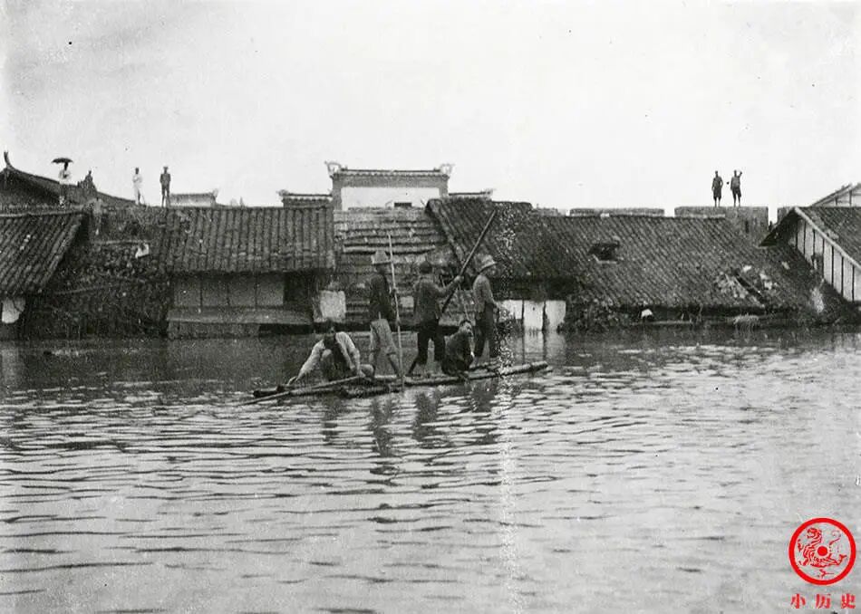 现已不清楚照片所记水灾发生的具体时间。据文字记载,1909年湖南全省大部分地区发生水灾,“人畜随波而下者十余日不绝”,境况凄惨。有学者统计,1840年直至清朝灭亡,湘潭发生大水灾12次,每隔5、6年就有一次,给百姓带来巨大损失。