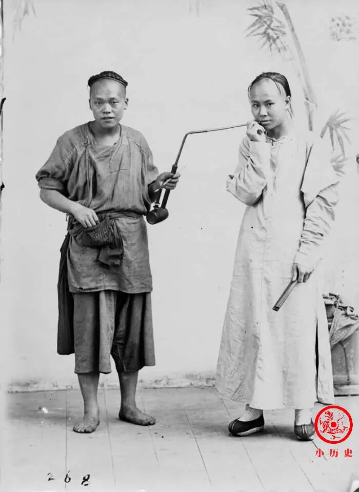 街头存在着这么一种流动商贩:他点燃装满烟叶的烟斗,收取一定的费用,让过往路人抽几口过过瘾、解解馋。清末民初的影像资料对此都有记录,但相关文献很少。我有一个疑问,所有的客人都使用同一个烟嘴,岂不是很容易传播疾病?卫生问题如何保证?