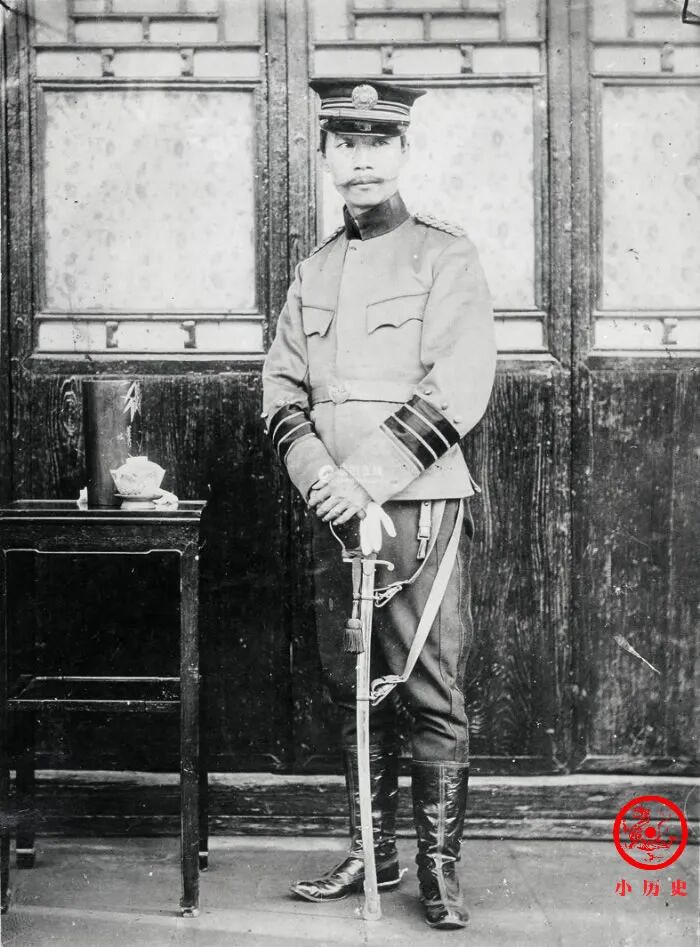 这张照片拍摄于袁世凯担任山东巡抚期间,当时他正统帅着他一手创建的新建陆军——武卫右军。在1900年抗击八国联军入侵的战争中,武卫左、前、后、中军均遭受重创,只有武卫右军被袁世凯带入山东境内,未与八国联军作战,保存了实力。