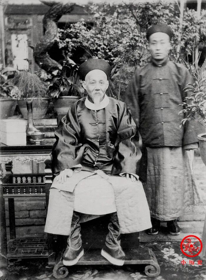 张之洞担任湖广总督长达18年(1889-1907年),这在清朝历史上是很少见的。他思想前卫,举办了诸多洋务事业。他旁边的桌子上摆着高脚玻璃杯,难道是在喝洋酒?