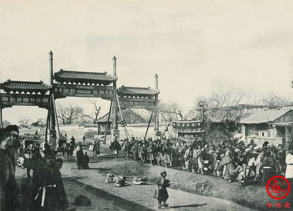从棺罩和杠夫数量来看,死者一定是一位品级很高的大臣,平民不能使用这种规格的礼仪。八国联军侵入北京后,有一批向来敌视洋人的大臣自杀或被联军擒杀。