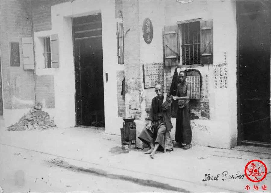 一个小小的理发摊,连个遮阳棚、遮雨棚都没有,但依然在墙上挂出了“德祥泰”商号和各类服务的价目表。要问一个剃头匠能提供什么服务?剃头、编辫子就不用说了,采耳、端打、推拿、按摩、刮脸、剪鼻毛……没有十几项绝活,怎么好意思出街摆摊?