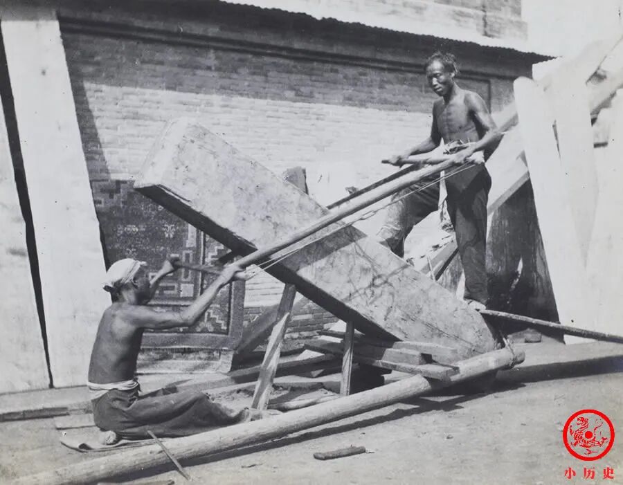解板就是将大木头锯成板材,俗称“拉大锯”。民间有歌谣说:“千匠万匠,不要学解板匠。晴来解在山头上,落来解在埂沿上;站起来吊煞相,眠倒来活和尚。”道出了解板匠的艰辛:开始锯大木头顶端的时候,匠人站在凳子上,像个吊死鬼;等到锯底部的时候,解匠坐在地上,像个活和尚。现在,这一行当早已消失不见。