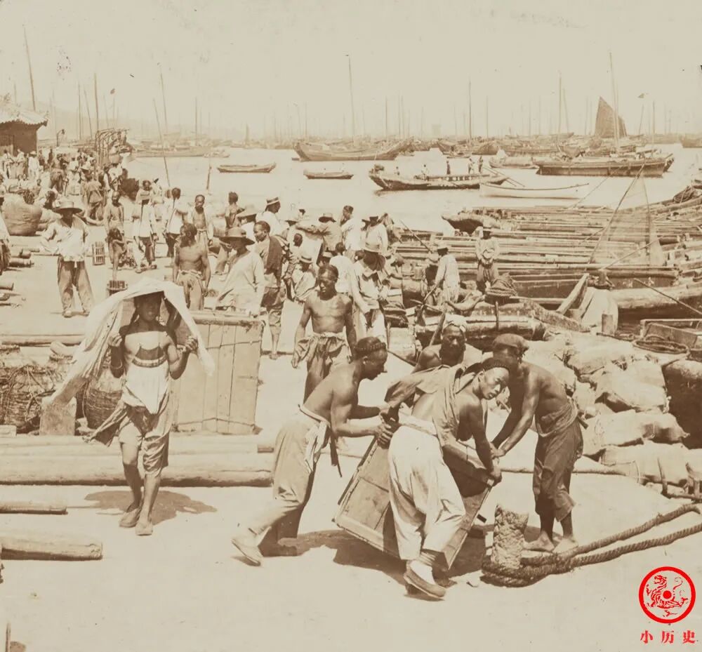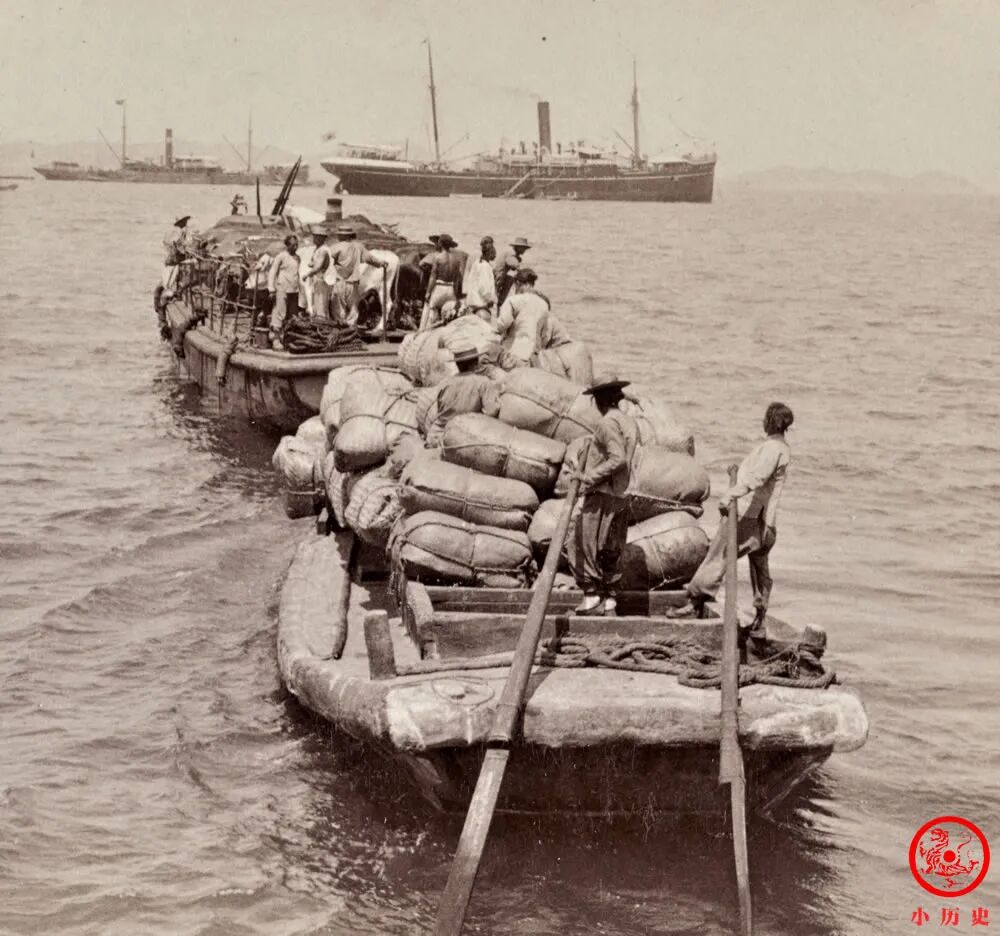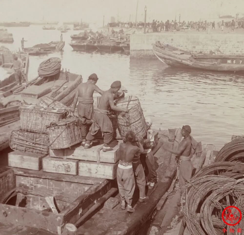 因为开埠,烟台迎来了国际化的港口贸易,当时港口繁荣一时,工人忙忙碌碌,船只进进出出,货物上上下下,人声鼎沸,汽笛轰鸣,一片热闹景象。其贸易额从1864年的627万芝罘两达到1905年的4435万海关两,发展速度不可谓不快!
