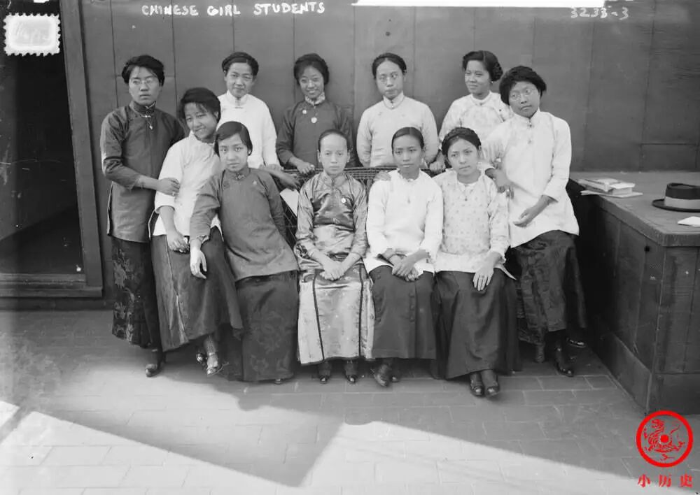 19世纪末20世纪初,一些城市先后创办了各种类型的女子学校,开启了近代化的女子教育。不过,这些女校有着明显的贵族化倾向,学生大多出身于开明的富贵之家。照片中的学生衣着光鲜亮丽,也是当时最为时髦的装扮。