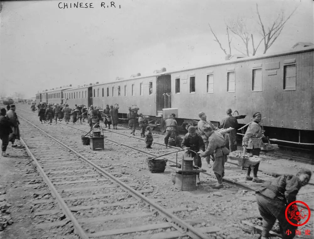 清朝把兴修铁路列入国家发展计划,始于1886年。即便如此,因为顽固派阻挠以及缺乏经费等原因,铁路建设十分缓慢。在开通的线路中,管理混乱,时常发生安全事故。我们在照片中看到,商贩公然在铁轨上摆摊,旅客随意穿越铁路,潜藏着很多隐患。