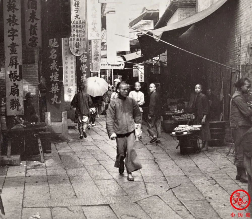 晚清到访广州的外国人记载道:“虽然(广州)街道很宽阔,却经常发生拥堵,你很难站在某地固定不动。因此,拿着鞭子的士兵们还负责维持交通秩序。……一顶顶华丽的轿子总是会增加行人的尴尬。”这段记载反映了广州的热闹繁盛。