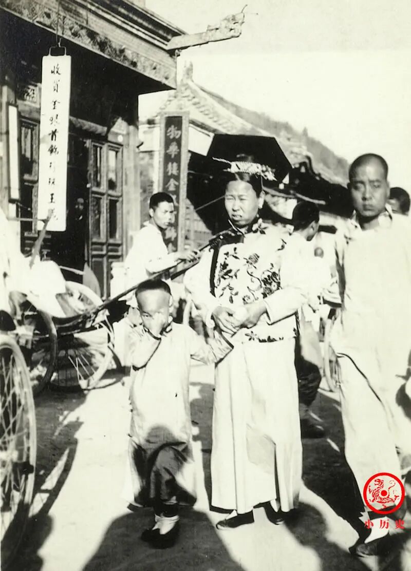 看这位妇女所戴的大拉翅和她穿的衣服,我们不难判断她是旗人。清朝灭亡后,旗人按月领取的饷银断绝,他们的生活大不如前,陷入贫困的境地,靠卖祖产过活,甚至有沦落为乞丐的。