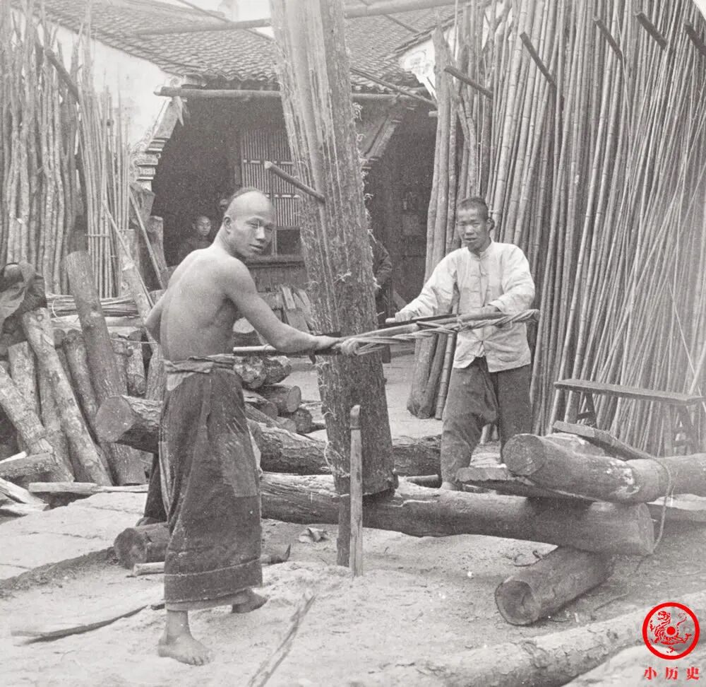他们正在将原木锯成木板,这是一个既耗时又耗体力的活。