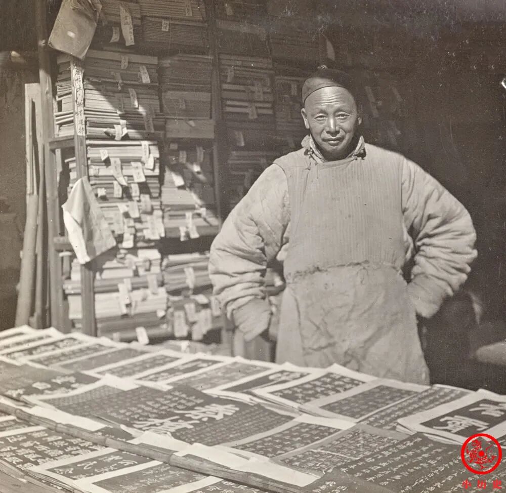 书店老板面前摆着各种各样的字帖,有着浓浓的文化气息。
