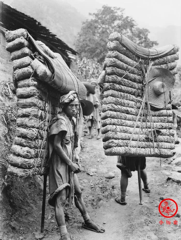 这张照片非常经典,流传很广,报刊、书籍、网络上引用较多,在此给大家补充两个信息点:照片的拍摄时间是1908年7月30日,拍摄者即欧内斯特。背夫常年穿梭在崎岖的川藏山道上,将沉重的茶叶(负重可能超过100斤)运往青藏高原,个个堪称大力士。由于山路过于险峻,不适合骡马通行,只能由这些背夫将货物运过去。