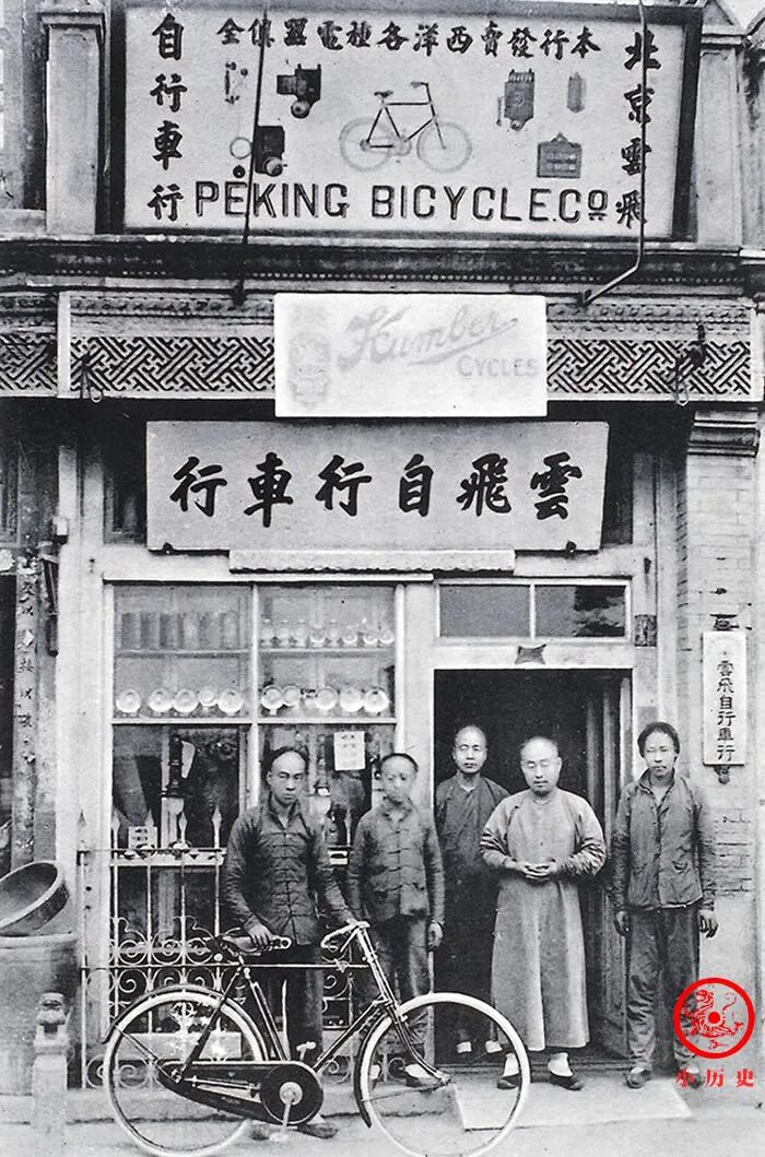 清朝同治年间自行车进入中国,到光绪年间后期,上海、北京、天津等地陆续出现专门经营自行车进口和销售的公司。这家云飞自行车行位于东单二条,是北京最早销售自行车的公司之一。