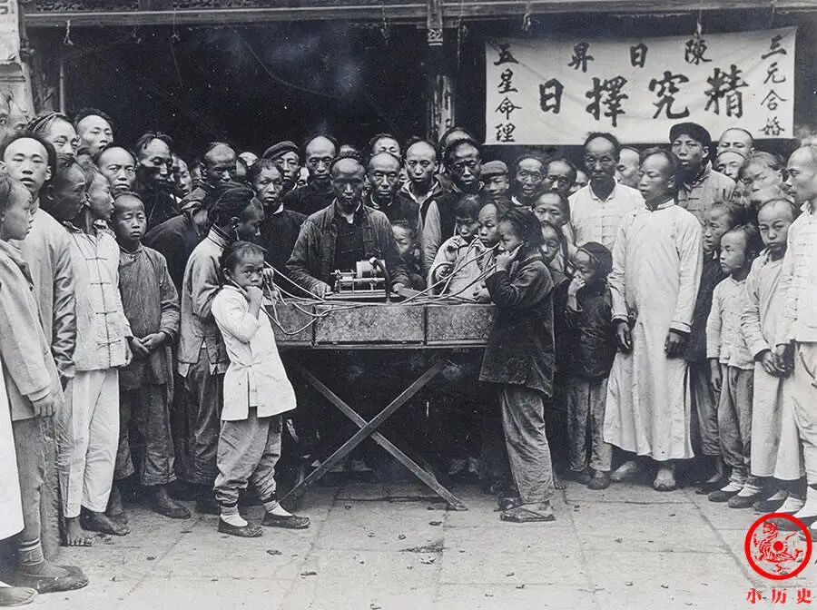 到底是大城市的孩子,有机会接触到留声机这种新鲜玩意儿。晚清时期留声机是奢侈品,难得一见,更难得体验一下。我从这张照片看到的是,无论从前还是现在,孩子们的好奇心始终是强烈的。