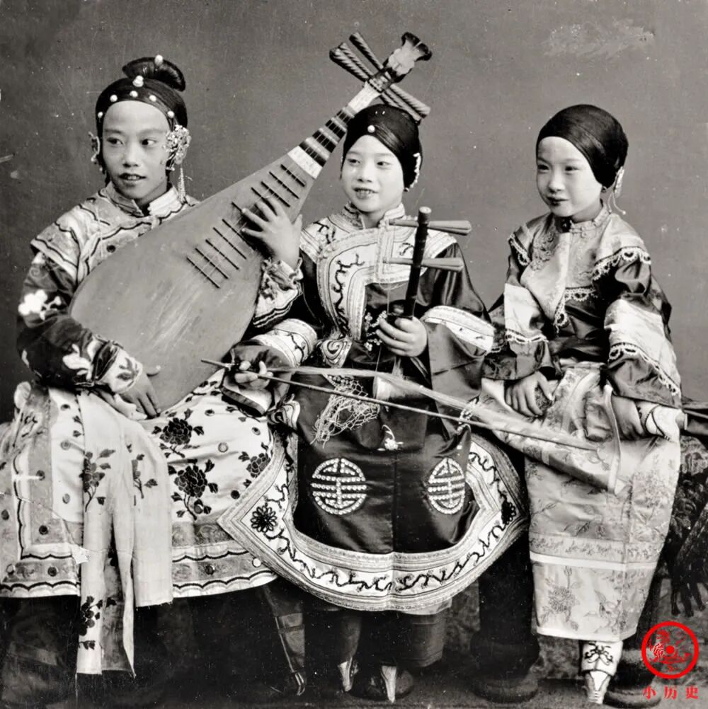 三个孩子都未成年,但她们的穿着头饰使她们看上去显得老气,尤其是头上戴的抹额,掩盖了本应有的青春气息。再看她们的脚,小小年纪就裹成了“三寸金莲”,以取悦男人,实在令人痛心。