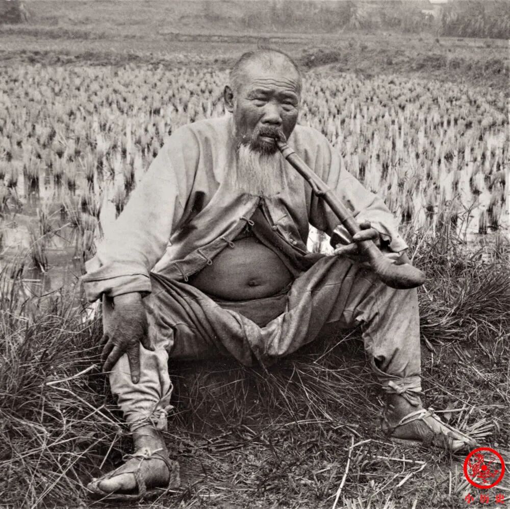 广州河南即今海珠区,当年“周回五六十里江水四环”,非常适宜种植水稻。这位老农悠闲地抽着烟斗,看他胖乎乎的身材,生活似乎还不错。