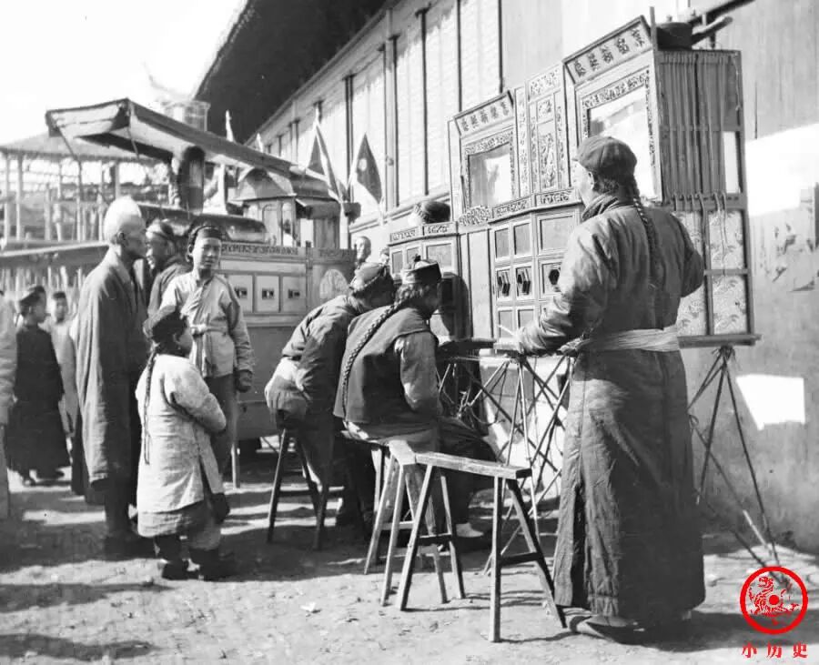 西洋镜是从欧美传入的一种娱乐装置,箱子里装着画片或照片,通过镜头观看,能看到放大、立体的画面。现在感觉这种玩意儿平平无奇,但在当时还是给人以震撼的视觉体验。