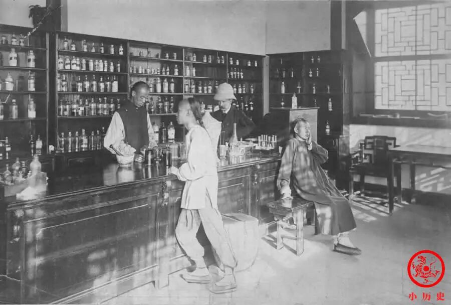 这是一家在当时还比较少见的西医医院,架子上摆着各种药品,与中药铺的格局完全不同。
