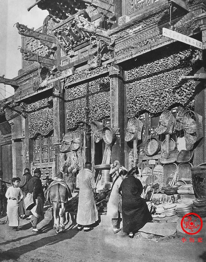 大家请注意这家店铺的门面,四柱三间,有着精美的木刻装饰。铺内可能有更大的买卖。
