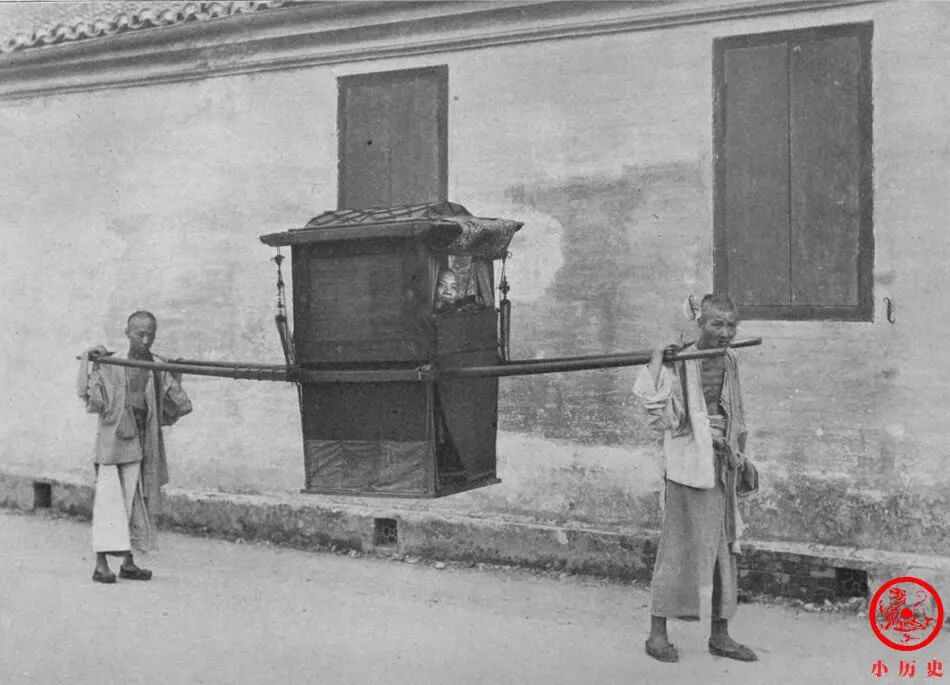 清朝使用轿子的现象并不是很普遍,用轿子的成本比较高。在当时用轿子,就像现在坐高档轿车一样。大家看那两个轿夫,骨瘦如柴。