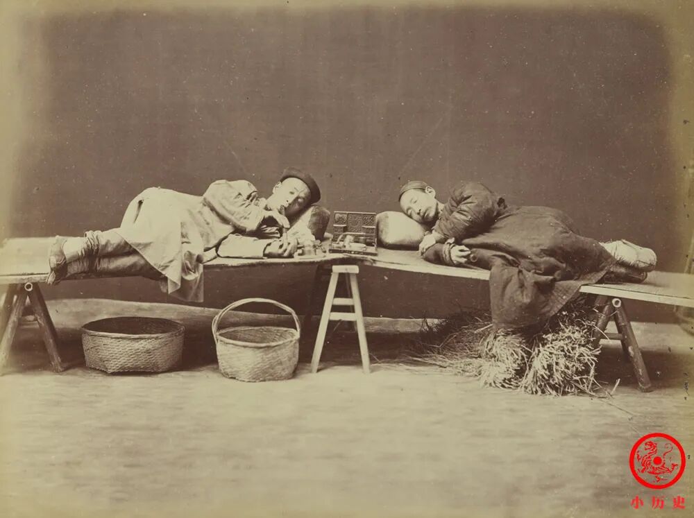这两个人躺在床板上,其中一个正在吞云吐雾,另一个吸食后已经昏昏睡去。