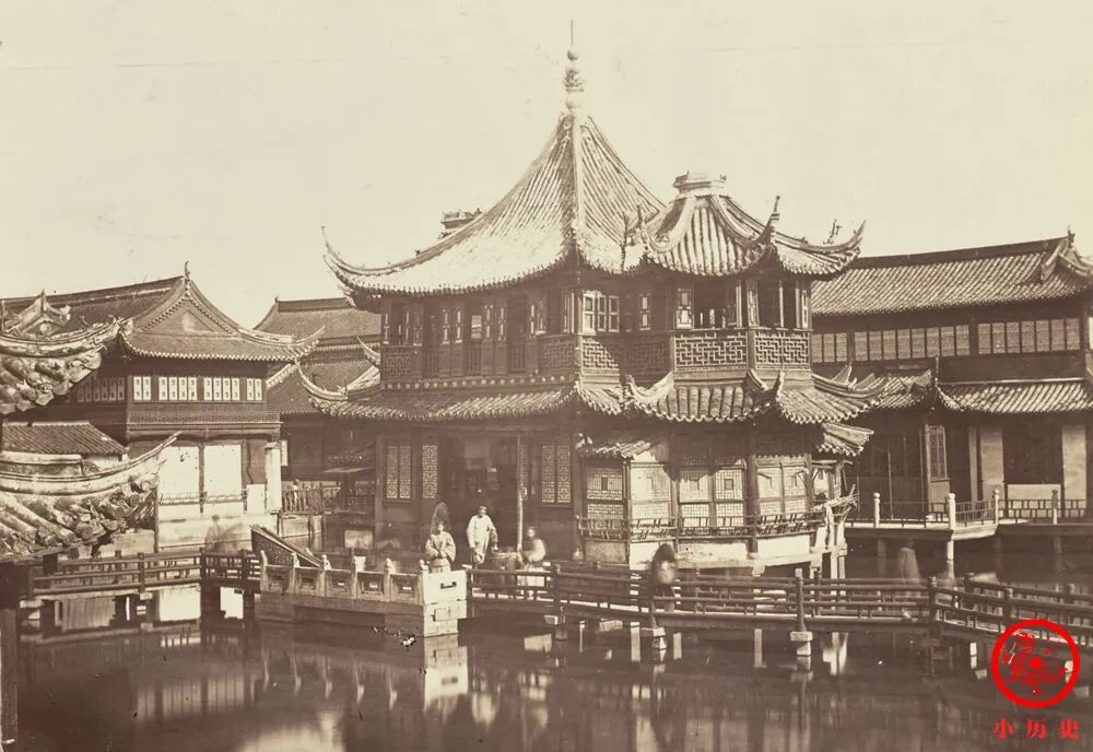 湖心亭始建于1784年,原为私家园林豫园中一景,1855年改为茶楼,自此成为上海最具盛名的茶楼。湖心亭立在水中央,有九曲桥可以通达。九曲桥九曲十八弯,且每个弯曲的角度大小不一,有的大于90度,有的小于90度。