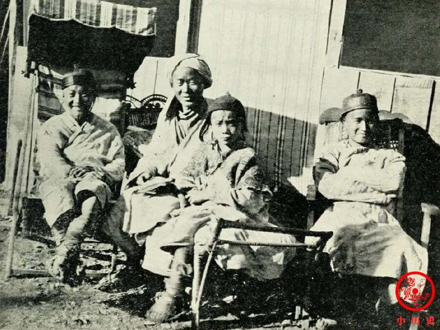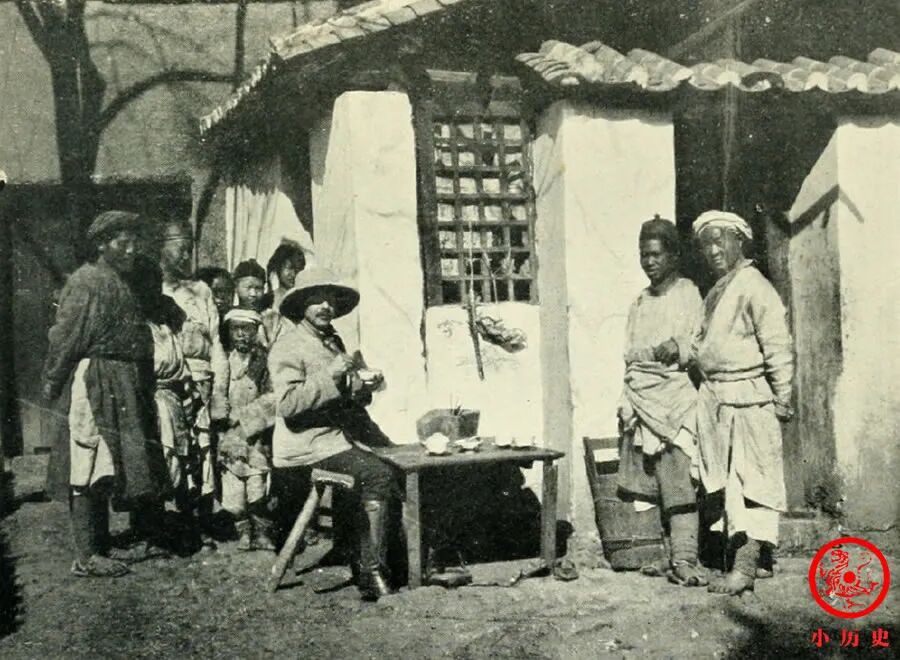 这些好奇的百姓很可能第一次见到外国人和照相机。