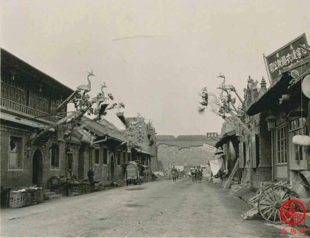 城墙外的地段,在当时算郊区了,从照片上看去依然房屋密集,聚集着大量人口。