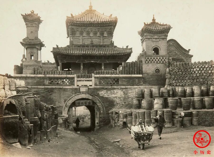 彭城东阁也称玉皇阁,是彭城的东大门,阁上左右分别为钟楼、鼓楼。彭城号称瓷都,被誉为“磁州窑”发祥地,是清朝北方最大的民窑产地。路两边摆放了很多大缸,是窑厂的残次品么?
