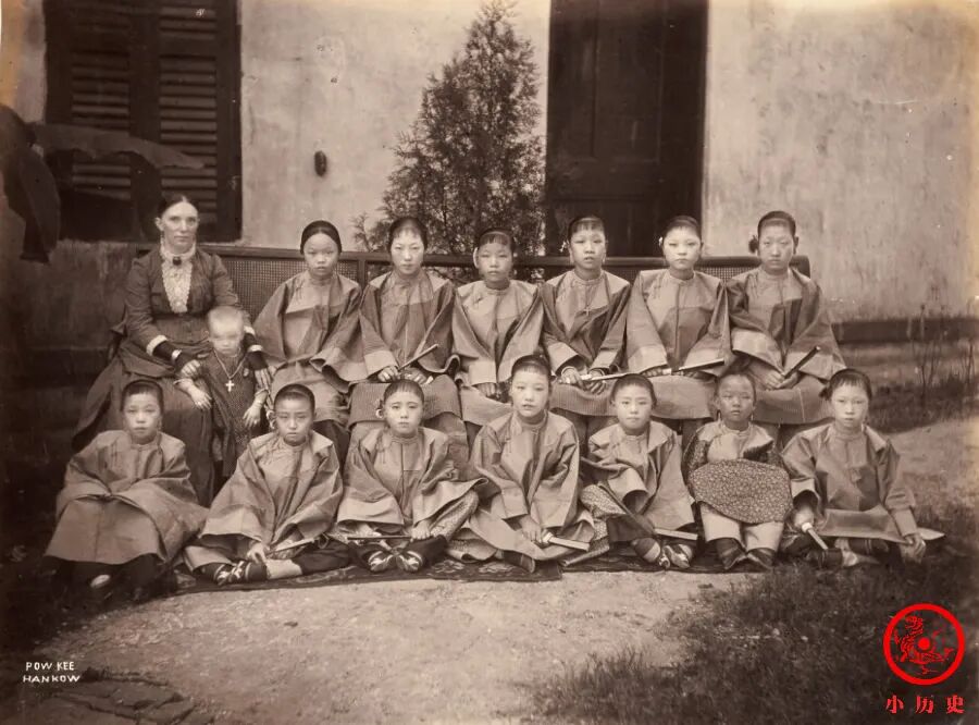 一个外国妇女在汉口创办了一所小型的女子学校,免费提供衣食,教她们认字,同时传播教义。办学不是她的真实目的,传教才是,因此可以说这是晚清遭受文化侵略的一个具体例证。
