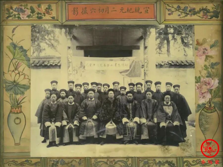 这张照片拍摄于1909年初春,是郇阳高等小学毕业式上的师生合影。1904年1月,清廷颁布《奏定学堂章程》(癸卯学制),把小学划分为初等小学堂(5年制)和高等小学堂(4年制)两个阶段。从照片中看,这些高小毕业的学生,年龄和现在的初中毕业生差不多。