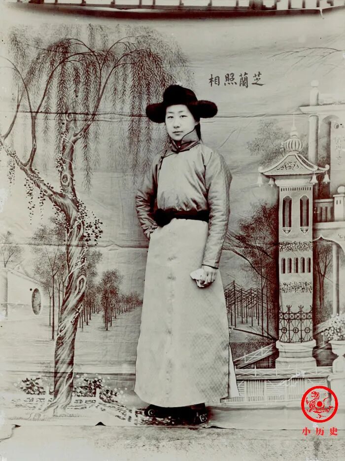 恒馨是乾隆帝五世直系孙女,毓朗贝勒的次女,末代皇后婉容的继母,人称二格格。照片中她穿男装,风华正茂、英姿飒爽。她在清末民初的皇室中具有传奇色彩,精明能干、阔达开朗且机敏果断,这种性格也深刻地影响了婉容。