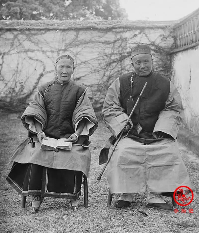 老太太手持书本,应该是识字的,这在当时很少见,大部分情况下女人以不识字为荣,女子无才便是德嘛。老头子拿着长长的旱烟,象征他拥有丰富的生活经验,吧嗒吧嗒抽两口,然后对某事发表意见,是一个老人常见的形象。