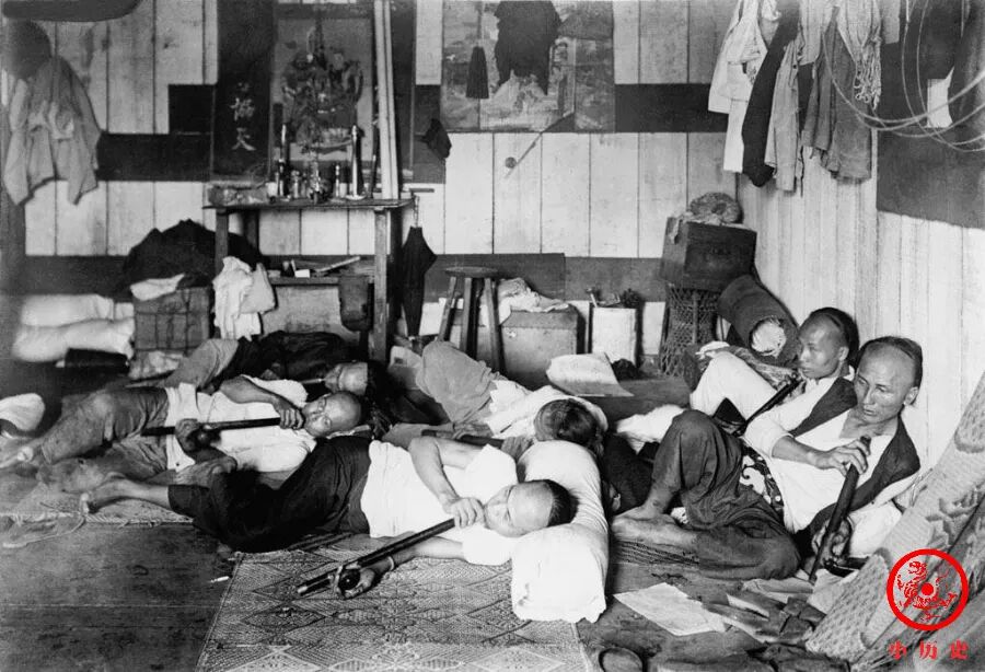 一群男人躺在地上抽鸦片,精神萎靡,如同行尸走肉一般。他们的房间简陋杂乱,无疑是一群来自底层的劳动者。这些经济条件不好的人,还染上了鸦片烟瘾,给家庭带来不必要的负担,也给身体带来不必要的病痛。
