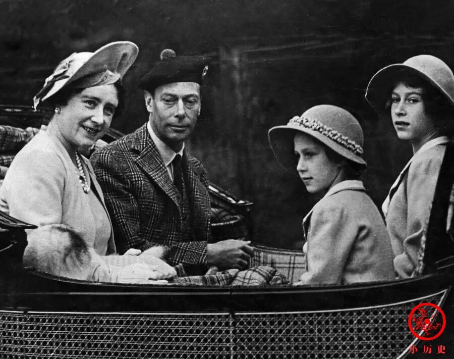 1939年伊丽莎白(右一)与父母和妹妹。